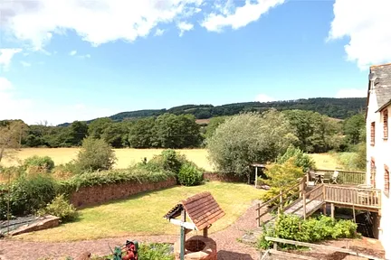 The main house is approached over a brick paved courtyard with low stone walling and wrought iron railings. The main gardens are arranged to the rear of the property and laid predominently to lawn with inset shrubs and trees and a gravelled and stone terrace with the leat running through. There is also a timber decked terrace immediately outside of the sitting room from which there are wonderful views over farmland towards Dunkery. There is a separate five bar gate entrance into the yard where there is access to the mill building, forge and workshop.