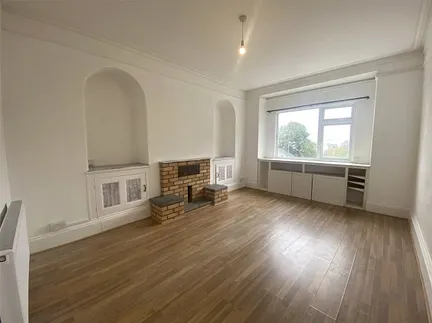 The living room is a bright and inviting space with panoramic views stretching across the channel to Capstone Hill and beyond. Ample room for lounge furniture and a small dining area. Finished with laminate flooring, double-glazed windows, and gas radiators.