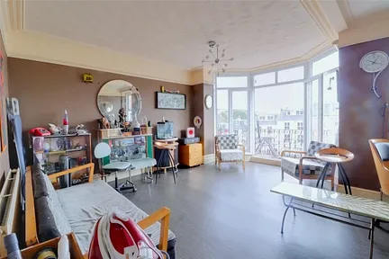From the landing into the kitchen/dining room, there is plenty of worktop space with an integrated stainless steel sink and drainer and space and plumbing for a dishwasher. The landing leads into the lounge which is flooded with light via the unique French doors which flows out onto a private balcony with its own sea views.