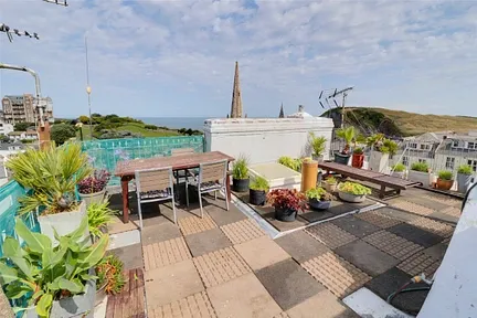 A staircase leads up to the impressive roof terrace with 360 degree views over the town and towards the Bristol Channel.
