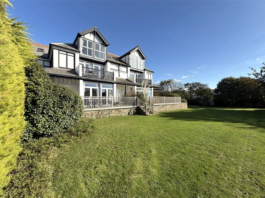 Outside to the front are two designated parking spaces and gate to the large communal gardens. To the garden behind hedging Flat 5 has a useful shed for surfboards etc.