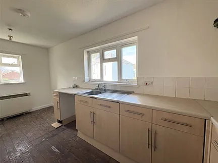 The living space is generously sized, offering ample room for separate living areas. The kitchen/diner, located just off the living area, features a mix of wall and base units, providing plenty of storage space. There is also ample room to accommodate a separate dining area.