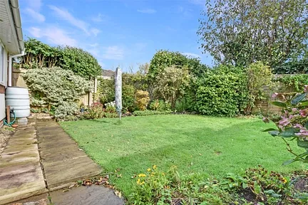 At the rear of the lounge, a doorway leads through to the rear portion of the bungalow, where the living quarters are thoughtfully laid out. The shower room is in good order and easily accessible for both bedrooms. An airing cupboard is also located here, providing additional storage options. Both double bedrooms offer pleasant views over the garden. Bedroom one benefits from built-in wardrobe space, giving the room a tidy and uncluttered feel.