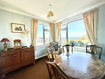 The bungalow's design makes it perfect for downsizers or those seeking to reduce maintenance, featuring easy access with very few steps and bright, airy rooms throughout. The accommodation includes a large, sunny lounge with a desirable southerly aspect, flooding the space with natural light. Adjacent is a separate dining room with two corner windows, perfectly positioned to take full advantage of the spectacular views of the Torrs and the coastline.