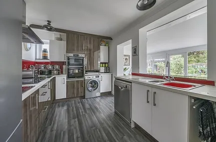 Step inside via an opaque UPVC double-glazed front door, which opens into an entrance porch with natural slate flooring. A part-opaque double-glazed inner door then leads into a welcoming hallway, with loft access and doors to the remainder of the accommodation. The open-plan lounge/kitchen forms the heart of the home. Double-glazed French doors open onto the attractive rear garden, flooding this room with natural light and creating a bright and sociable space to relax or entertain. This seamlessly flows into a stylish, contemporary kitchen fitted with a range of base units and drawers, complemented by work surfaces and an inset one and a half bowl stainless steel sink. With an electric induction hob with glass splashback and cooker hood above. and a built-in electric oven. There is space and plumbing for a washing machine and dishwasher, plus additional space for a freestanding fridge/freezer. Concealed wall-mounted gas combination boiler. From the kitchen, access is given to the garden/dining room—a light and airy space with windows to three sides and French doors enjoying fine views of the landscaped garden.The property offers two generous double bedrooms. The principal bedroom benefits from a bay window to the front, enhancing the light and airy feel, with ample space for freestanding bedroom furniture in both rooms. The modern bathroom comprises a panelled bath in tiled surround with a wall-mounted shower over, vanity unit with inset basin and cupboard beneath, tiled splashback, W.C, ladder radiator, inset ceiling spotlights, extractor fan, and an opaque double-glazed window.