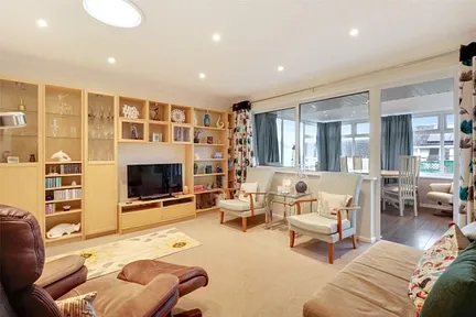 The property benefits from a rear extension accessed through the spacious lounge that offers space for sizeable furniture, creating an enhanced living space that flows effortlessly and provides a versatile area for dining, relaxing, or entertaining. Large windows and glazed doors allow natural light to flood the room, giving a wonderful sense of space and connection to the garden