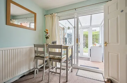 Step into the entrance hall with loft access and doors leading to all principal rooms. To the rear of the property is a well-proportioned open-plan lounge/dining room, with a wall-mounted gas fire and double-glazed patio doors opening into the conservatory. The conservatory enjoys pleasant views over the rear garden and provides direct access outside. With a wall-mounted electric heater. The modern, well-appointed kitchen offers a comprehensive range of wall and base units with drawers, complemented by roll-edge work surfaces and an inset stainless steel sink with splashback tiling. There is an inset electric hob with glass splashback and built-in electric oven beneath, plus space and plumbing for a washing machine and a freestanding fridge/freezer. Airing cupboard housing hot water cylinder with shelving, a wall-mounted gas boiler, ceiling striplight, UPVC double-glazed window, and a double-glazed door providing access Onto the driveway. Vinyl flooring.