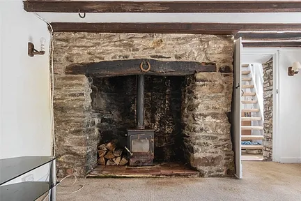 On the ground floor, the property comprises a cosy reception room with a traditional cottage feel, featuring a wood burner and bread oven, a functional kitchen with scope for improvement, and a downstairs bathroom. To note, the WC is situated separately from the bathroom.