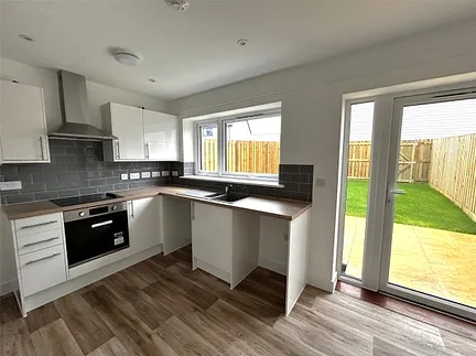 This two bedroom terraced home would be perfect for growing families, and was constructed by local building contractors on behalf of Perran Housing LLP, a subsidiary of Cornwall Council. There is a spacious fitted kitchen/dining room with a range of matching unit, integrated oven and hob and space for appliances, and access to the enclosed rear garden. The living room is well sized. On the first floor the family bathroom has a three piece suite. There are two double bedrooms. The house has air source heating and UPVC double glazing, as well as PV solar panels. The rear garden is mainly lawned with a paved area. There is parking for one car. Comes with a 10 LABC warranty.