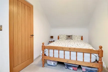 Upstairs, the first-floor landing, complete with fitted carpet, leads to the two generously sized double bedrooms, both of which are illuminated by Velux skylight windows, enhancing the sense of space and light.
