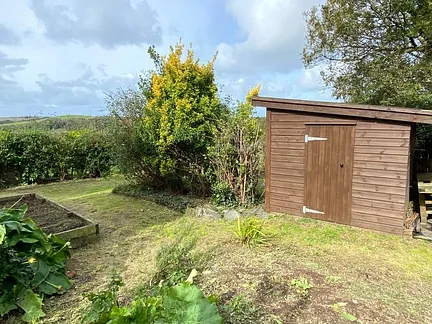 The garden is a particular feature of the property. Deceptively spacious, it wraps around the neighbouring cottages and includes established kitchen garden beds, mature shrubs and a timber outbuilding, currently arranged as a part shed, part summerhouse/studio.