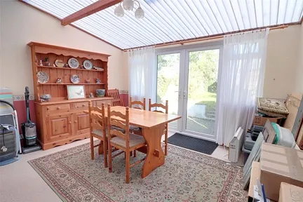 Inside, as you step through the front door into the living room you see the exposed stone of a working inglenook fireplace with an original clome oven, along with a wood burning stove which provides the seasonal warmth and heating to the property, along with some wall hung electric heaters. Original slate floors are in place both within the living room and kitchen. The compact kitchen is fitted with a selection of pine fronted units and light coloured working surface. The electric oven, electric hob and extractor fan above, along with the fridge freezer and washing machine are included within the sale. Some of the other furniture within the cottage could be included too. A large sunroom is currently used as a dining room and leads out via French style doors to the rear garden.