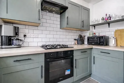Heading towards the rear of the home you enter the open plan living / dining room. Featuring ample space for sizeable furniture, a useful under stairs cupboard along with French doors that open onto the garden.