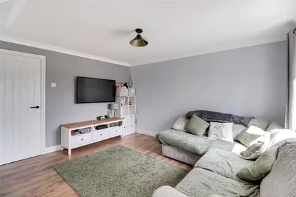 Upstairs, there are two generous double bedrooms, including a particularly impressive main bedroom with dual aspect windows and built-in storage. The newly fitted modern bathroom includes a sleek four-piece suite, offering both a bath and separate shower.