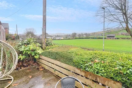 The rear garden is larger than expected, laid to lawn with well stocked flowerbed borders, trellis and fenced boundaries, and a garden shed. Its elevated position provides lovely views across the surrounding countryside.