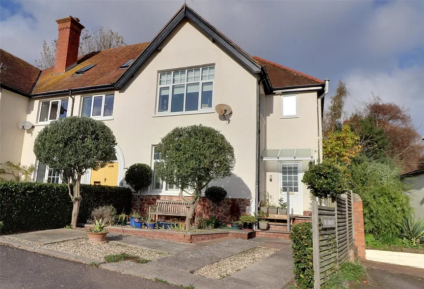 To the front is a paved seating area with additional parking space and there are two further designated spaces in the communal parking area off the entrance drive. A pedestrian gated side entrance gives access to a delightful part walled rear garden which is arranged over different levels, paved and gravelled with open fronted summerhouse and workshop.