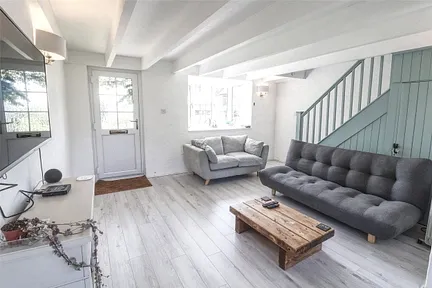 The cottage offers a well-balanced layout comprising an open-plan living, kitchen and dining area with views over the surrounding green space and pond, two generous bedrooms (a double and a twin), and a family bathroom. Thoughtfully maintained and recently decorated throughout, the property benefits from a new heating system and fuse box/electrics and newly fitted laminated flooring. The property is being sold with the option of being fully furnished and no onward chain.