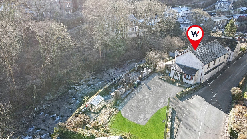 Outside to the front of the property is generous driveway parking for several cars and sufficient enough to erect a garage or ample space for a chalet/caravan/motorhome subject to planning permission. 2 Woodland Dell has tandem parking for 2 cars (marked on land plan). The rest of the grounds make up a walled garden, with hard standing area for outdoor dining and beds for growing fruit or veg. The house also has the river flowing below. Available with no chain.