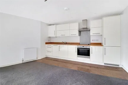 The property is entered via a secure communal door with intercom system, leading to a private entrance hall with a large and useful storage cupboard. The impressive open-plan living space is bright and airy, featuring bi-folding doors that open onto a balcony with delightful views across the River Yeo. The modern fitted kitchen features a range of wall and base units with complementary work surfaces, and benefits from integrated appliances including an electric oven with hob and extractor hood, a built-in dishwasher, fridge, and freezer.