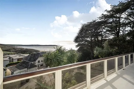 Boasting an exceptional front elevation outlook across Woolacombe Bay and out towards the Bristol Channel, this light-filled and spacious apartment features a stunning 34-foot sea-facing balcony—perfect for relaxing or entertaining while enjoying panoramic coastal vistas.