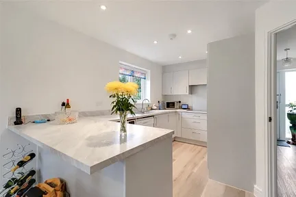 The accommodation is immaculately presented and plentiful in natural light, comprising a spacious central entrance hall with built in storage cupboard and a downstairs toilet housing a WC and wash hand basin. To the right is the open plan kitchen / dining room, which has patio doors leading out to the garden. The kitchen is well fitted with a range of wall and base units, stainless steel sink and drainer with mixer tap, electric induction hob and double oven. There is also an integrated fridge / freezer and space and plumbing for a washing machine and dishwasher.