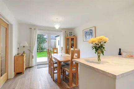 Double doors lead through from the dining area into the living room, enjoying an abundance of natural daylight and patio doors leading out to the rear garden.