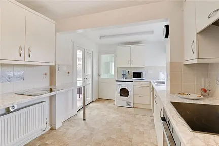 Inside, the bungalow offers well-balanced accommodation with three reception rooms, creating flexible living and entertaining areas. The kitchen is well-appointed and leads through to a useful rear porch which provides direct access to the garden. In addition, the kitchen opens into a conservatory, a bright and airy space ideal for year-round enjoyment.