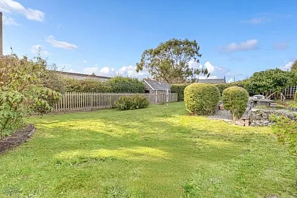 Outside, the grounds are as impressive as the interiors. The main garden is secluded and beautifully landscaped, with sweeping lawns, mature planting, and a raised decked terrace and stone patio offering perfect spots for relaxing or entertaining. A stone and slate outhouse sits in one corner of the garden, adding further charm and practicality. The garden borders the peaceful village churchyard, providing a tranquil and timeless outlook.
