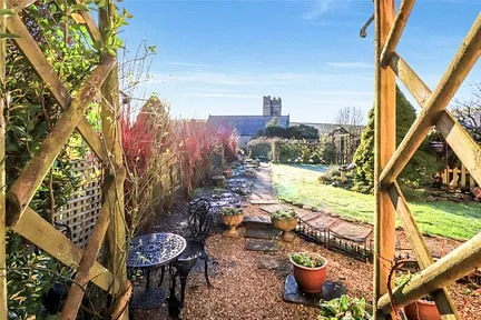 Upstairs, the landing serves as a light-filled study area, featuring a Velux window and large storage cupboards. The three well-proportioned bedrooms are all tastefully decorated, with Bedroom 1 being a double room with exposed timbers, Velux window, and an en-suite shower room. Bedroom 2 also enjoys a southerly aspect, with views over the cottage’s pretty gardens and the village church, while Bedroom 3 is a single room with a similar south-facing outlook. The family bathroom retains traditional features, with a timber panelled bath, mixer taps, shower attachment, WC, and pedestal wash hand basin, along with a radiator and exposed ceiling timbers.