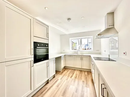 Thegood-sized main bedroom has a built-in wardrobe and its own well-appointed en suite shower room. There are two further bedrooms, both overlooking the rear garden. The contemporary family bathroom features modern tiling and a shower over the bath.
