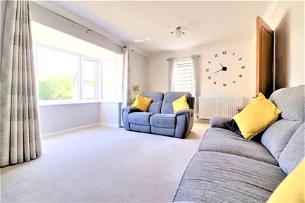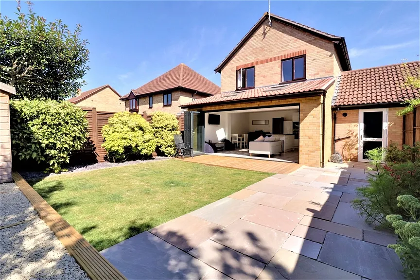 Off-road parking is provided in front of the garage and gives space for approximately three cars. The front garden is laid to lawn and offers small range of matured shrubs.