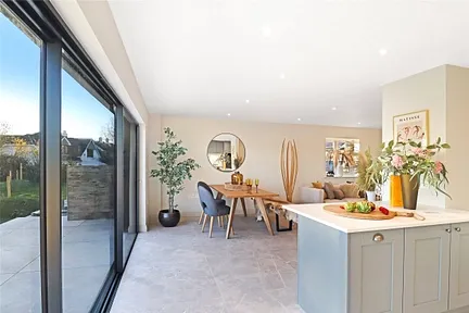 Applewood is at the end of the development, with its own private access and slightly larger total plot, with gas underfloor heating and generous practical space, including a front utility room and a shower room with walk-in shower. To the rear is a large kitchen/dining area fitted with modern units instant boiling water tap, an integrated fridge freezer, dishwasher, oven and a central island. Sliding doors open onto the rear garden, and a natural divide creates a cosy, separate lounge area to the front of the room.
