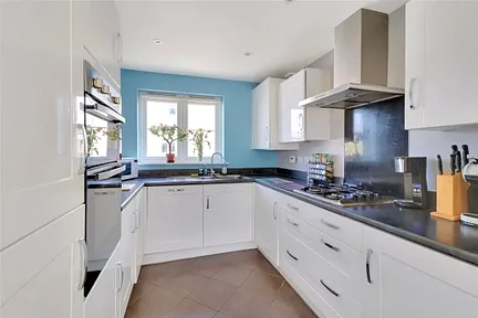 Upstairs, the generous main bedroom features a double-width fitted wardrobe, a large front-facing window that floods the room with natural light, and a modern en-suite shower room. The second bedroom is a spacious double with far-reaching views across open fields, while the third bedroom offers a good-sized single room or home office, also enjoying lovely open views. A stylish three-piece suite bathroom completes the accommodation.