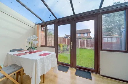 Step through a single-glazed front door into the porch, before entering the hallway with a staircase rising to the first floor and an under-stairs storage cupboard. The cloakroom comprises a low-level WC, a vanity unit with inset wash hand basin, and a ladder-style radiator. The modern fitted kitchen comprises a range of wall and base units with work surfaces over ideal for preparing family meals and an inset stainless-steel sink. Appliances include an inset gas hob with cooker hood and splashback, a built-in electric oven, and integrated dishwasher.Space and plumbing for an automatic washing machine, wall-mounted gas boiler, double-glazed window to the front, and part-glazed door leading to the driveway, tiled flooring. To the rear of the property is the light and airy lounge, with a stone hearth and timber mantel housing a gas fire. Patio doors open into the conservatory/dining room, which has a glazed roof and double doors leading out to the rear garden - making this and ideal space for entertaining or relaxing.