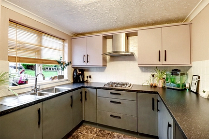 Overlooking the front of the property the modern fitted kitchen comprises of multiple eye and base level units including integrated electric oven, gas hob with extractor over and space for washing appliances.