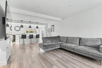 The property has been thoughtfully improved by the current owner and is finished to a very high standard throughout. Upon entry, you enter in to a hallway that immediately leads into a stunning open-plan living, kitchen, and dining space that has been completed with high-quality finishes. The stylish kitchen features a range of integral appliances, including a wine cooler, double oven, microwave, dishwasher, and fridge-freezer. Patio doors open directly onto the enclosed rear garden, allowing the space to be flooded with natural light and creating an ideal environment for both everyday family life and entertaining. A downstairs WC completes this floor.