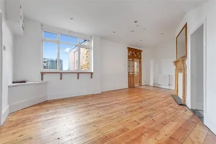 Towards the rear of the property is the kitchen/diner, designed to offer both practicality and a sociable feel. A mix of parquet and laminate flooring defines the space, which comfortably accommodates a breakfast table or informal dining area. French doors open directly onto the rear garden, filling the room with natural light and creating a seamless indoor–outdoor connection during the warmer months.