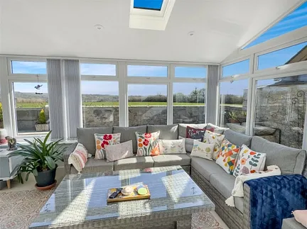This well-presented detached family home, dating back to 1864 and once serving as the original farmhouse, offers a wealth of character alongside comfortable everyday living. A granite porch leads into the welcoming living room, where two granite inglenooks house a wood burner and open fire, creating a warm and traditional feel. French doors open into the conservatory, which spans the width of the property and enjoys views over open countryside.