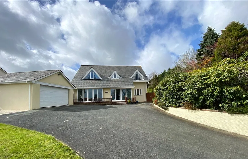 This substantial house comes to the market with no onward chain offering a versatile home to a variety of purchasers. Thought to have been built by a local builder during 2004 it is situated within a private location offering some fine views of Launceston town which is less than a mile away. The detached property is approached by a private drive passing a well kept lawn. The tarmac driveway offers space to park numerous vehicles and a double garage.
