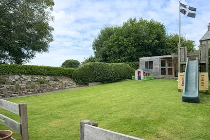 - Large lawned rear garden with patio, raised beds and summerhouse