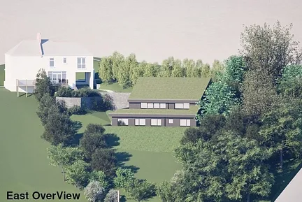 A standout feature of this property is the full planning permission granted for the construction of a highly individual, modern detached dwelling within the rear garden. Designed to blend seamlessly into the hillside, the proposed new home will enjoy the same stunning views and include vehicle access via a reconfiguration of the existing property’s ground floor — specifically the removal of the current kitchen, WC, and garage/utility space.