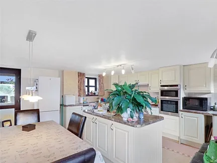 The kitchen breakfast room is well fitted with a range of wall floor and drawer units with associated work surfaces, and a large island provides natural division from where a table and chairs would naturally be placed. A door takes you out into a small boot room in turn giving accc3ess out into the garden. The sitting room is a lovely triple aspect room with feature fireplace and casement doors leading out onto a large terrace overlooking the rear garden.