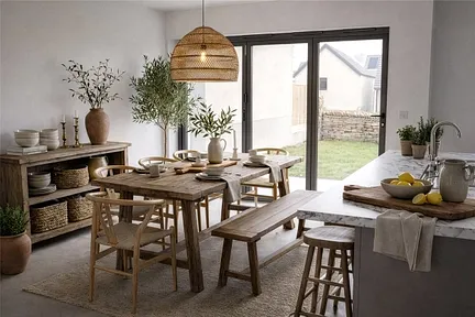 A spacious open-plan kitchen and dining area sits at the heart of the home, while the first-floor living room frames breathtaking lake views - a natural spectacle that rivals any television.