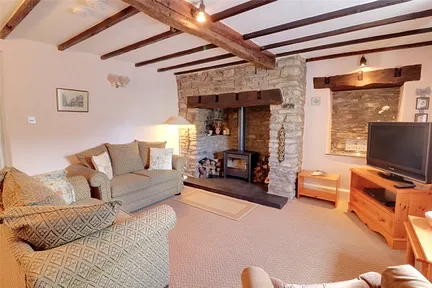 The lounge is well proportioned with a fantastic Inglenook fireplace with working log burning stove, providing a great amount of heat when in operation. Exposed stone walls and original timber beams are also on show.