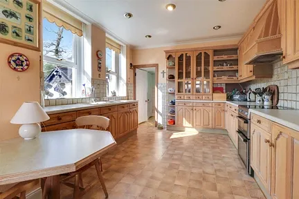 This attractive property is accessed through imposing wooden gates, opening onto a sweeping gravel driveway with ample space for multiple vehicles. From here, an elegant tiled porch welcomes you into the home, leading into a light and airy entrance hallway. Beautifully appointed with traditional features such as dado rails and ornate cornices, the hallway provides access to all the principal reception rooms, setting the tone for the period charm found throughout the property.