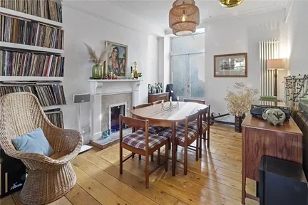 On entering the property, you are welcomed by a striking and characterful front door opening into a porch with original Minton tiled flooring flowing into an entrance hallway. The sense of space and heritage continues through to the main reception rooms, where the lounge has been opened through to the dining room, creating a superb flowing living area. Exposed wooden flooring runs throughout the property, complemented by charming period features including picture rails, fireplaces and a bay window to both the lounge and the principal bedroom.