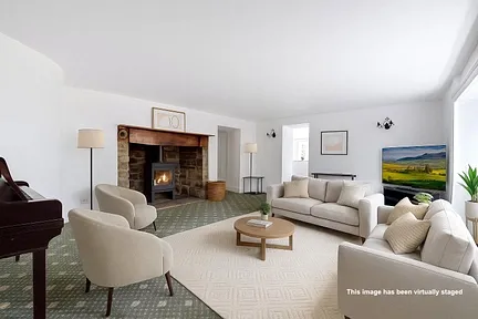 The main farmhouse - The front door opens into a generous reception hall, setting the tone for the scale of accommodation on offer. To one side lies a comfortable sitting room with dual-aspect windows and a feature fireplace, ideal for family evenings or relaxing by the fire. Opposite, a separate living room, also with fireplace, provides a further reception space and opens through to a large study or hobbies room, perfect for home working or creative pursuits.