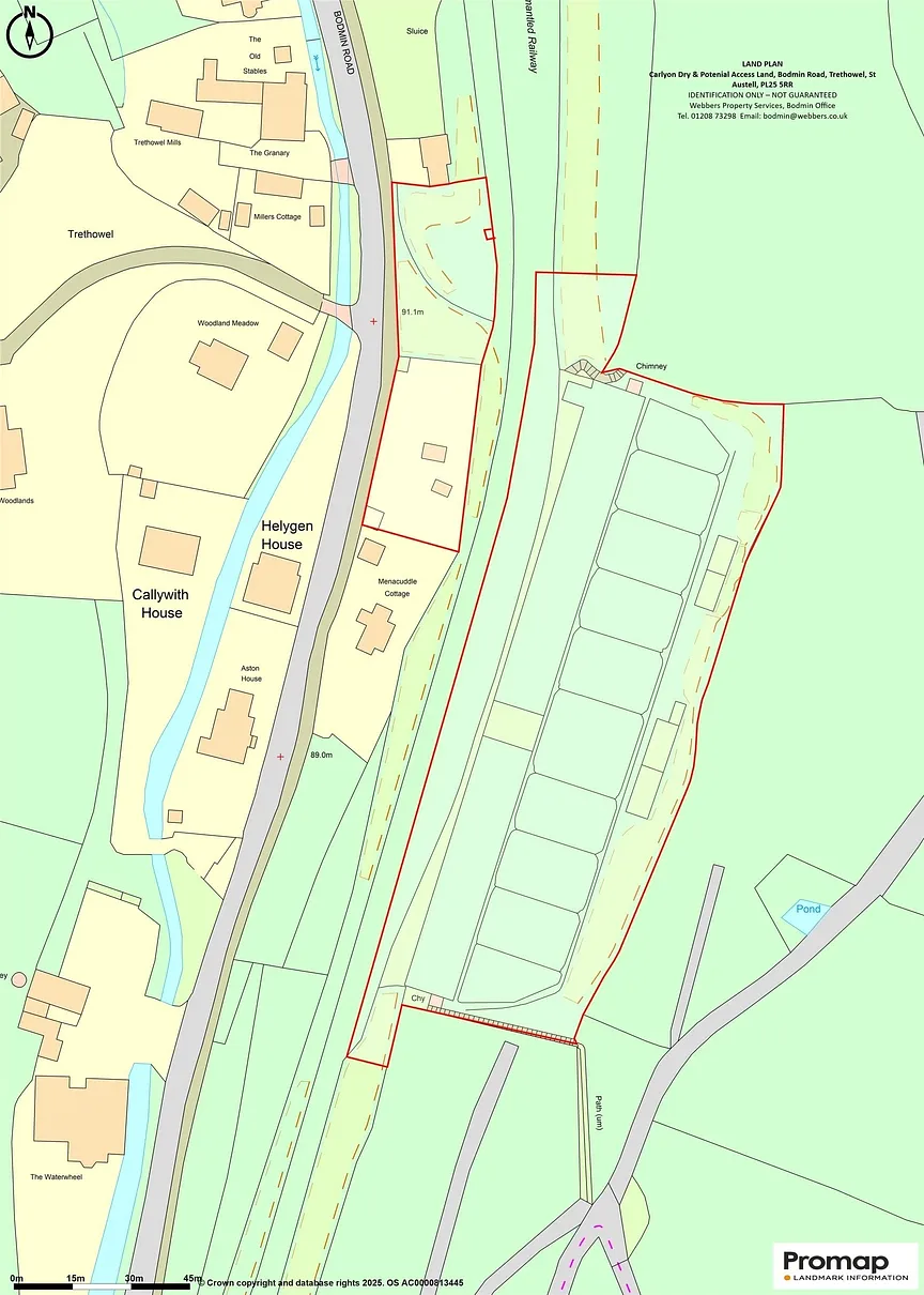 This property is located less than three quarters of a mile to the north of St.Austell Town Centre on the eastern side of the B3274 road. The Dry fronts onto a former railway line, now surfaced as a trail of about 1.75 miles leading form Tremenna Gardens, St.Austell to the south and ending The Wheal Martyn China Clay museum to the north. We understand from our clients that their company has a right of way over this trail and as indicated in title document as numbered below. However, we have not verified the current status and a purchaser must obtain their own advice over this.