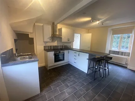 Internally, rooms include an entrance hallway, a large lounge with feature fireplace, modern fitted kitchen which has the benefit of a large breakfast bar, electric oven and hob. The external door leads to a small pathway (Please note there is no back garden at the property).