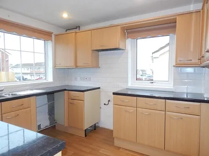 Outside, the rear garden is fully enclosed and mainly laid to lawn, providing a good amount of usable outside space. To the front there is an open lawned area, together with off road parking and a single garage. The property is available unfurnished from May 2026 for a long term let.